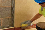 When scraping back through-colour render, take care not to make contact with the flexible membrane on the movement joint as this will cause it to fail.
